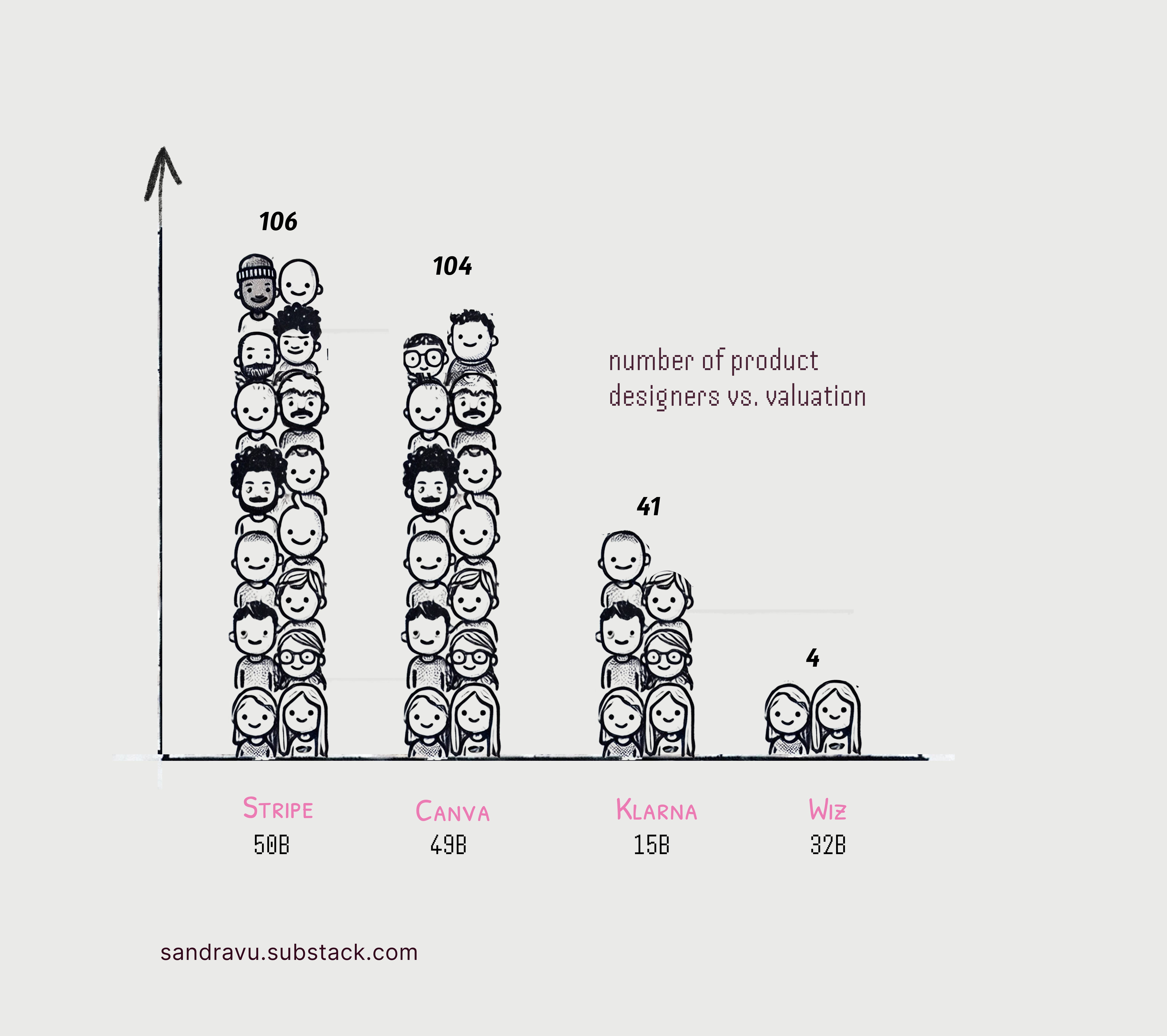 I was shocked to learn how small their design team is, especially their product design team. So, I made a chart to compare Wiz and companies with similar valuations.