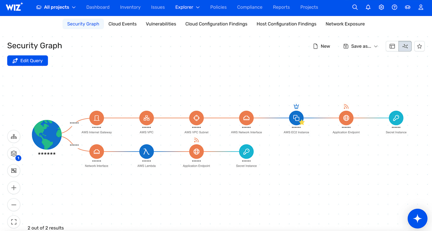 Visualization of the Cloud Environment: Wiz maps the entire cloud—identities, workloads, configs, networks—revealing toxic risk combinations and hidden attack paths missed by others